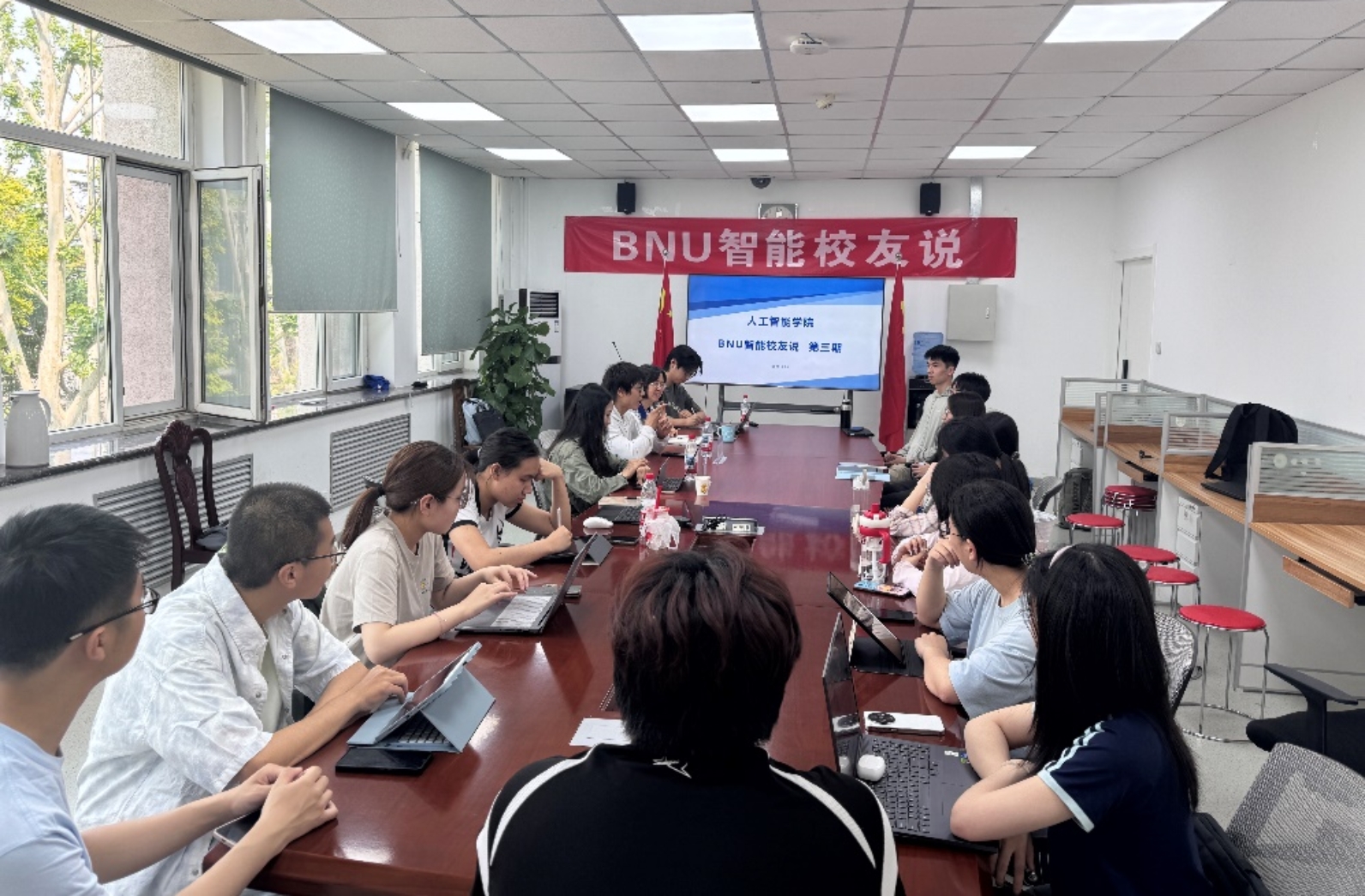 2025年5月25日,bet365中国 “BNU智能校友说”第三期活动在海淀校园电子楼306会议室成功举办。本次活动邀请到两位优秀校友——2022届毕业生秦东艺和2024届毕业生黄文山重返校园,与师范生师弟师妹们展开了一场干货满满的座谈交流。