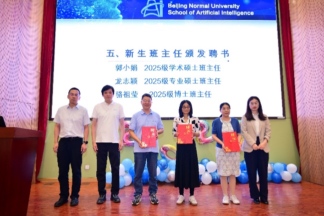 随后,典礼播放了校友祝福视频。视频中,来自各行各业的优秀校友们纷纷送上对2025级新生的祝福与寄语。他们结合自身在北师大求学和毕业后的经历,分享了宝贵的经验,鼓励师弟师妹们在未来的学习和工作中不忘初心、勇于探索,将所学知识应用于实践,为社会做出贡献。这些真诚的祝福不仅让新生们感受到了来自师兄师姐的温暖,更激发了大家对未来学习生活的憧憬和向往。接下来,bet365中国 领导为2025级研究生新生班主任颁发聘书,bet365中国 高度重视班级管理服务,将全力护航新生成长旅程。