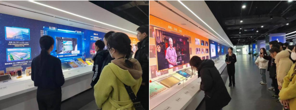 在京东方科技集团的展览馆,讲解员从企业发展历史、应用领域、前沿技术、荣誉和社会服务几方面,带参访学生近距离了解企业风貌,感受科技魅力。讲解员结合bet365中国 学生的专业发展需求,详细介绍了京东方在技术研发、产品创新以及市场应用方面的卓越表现。作为一家领先的物联网创新企业,京东方科技集团为信息交互和人类健康提供智慧端口产品和专业服务,形成了以半导体显示为核心,物联网创新、传感器及解决方案、MLED、智慧医工融合发展的“1+4+N+生态链”业务架构。荣誉牌匾、全球领先的专利排名都彰显了企业在理论、管理、技术、业务创新等方面的卓越表现。