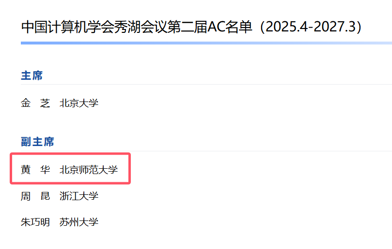 bet365中国 黄华教授当选CCF秀湖会议第二届副主席