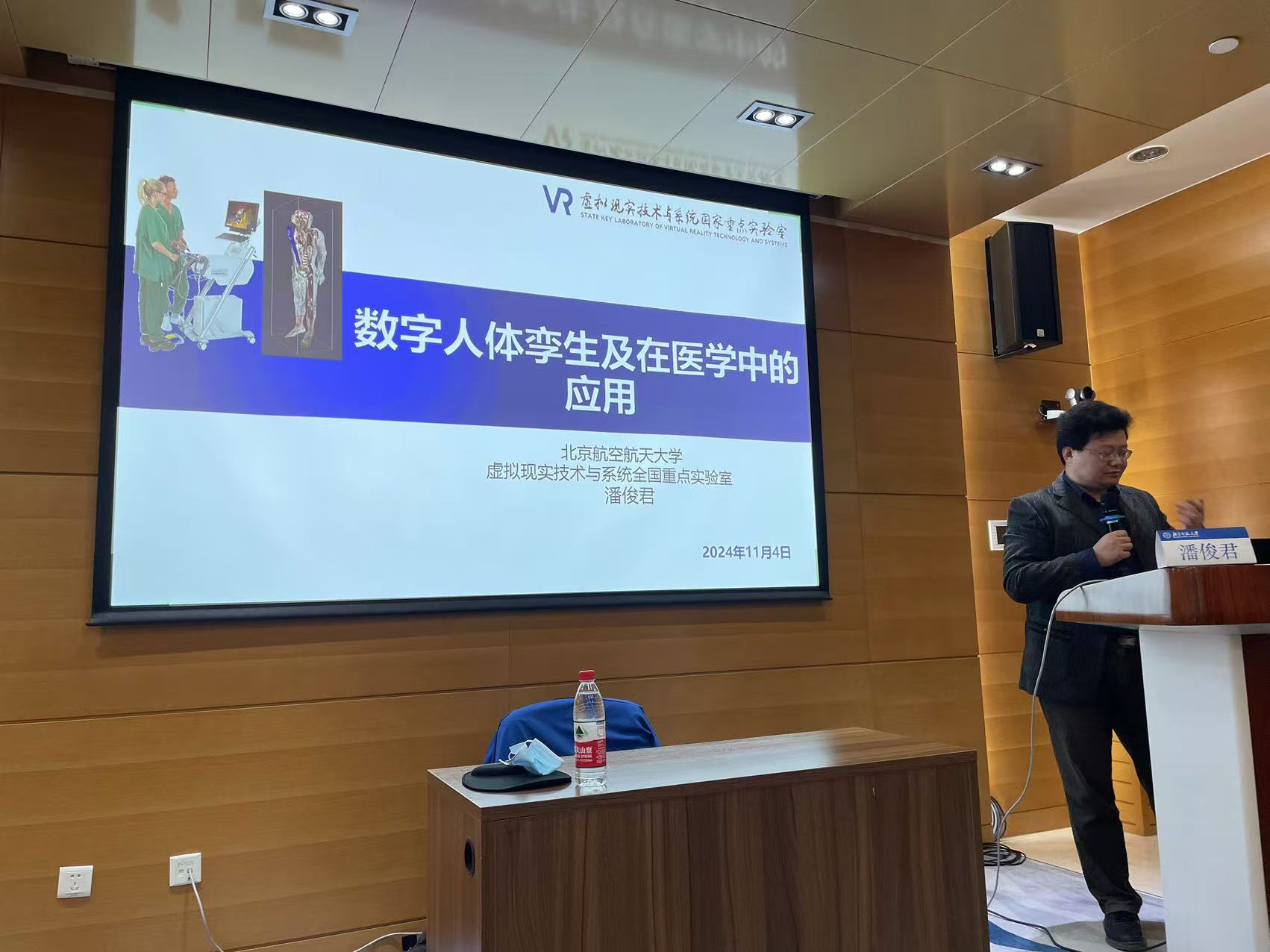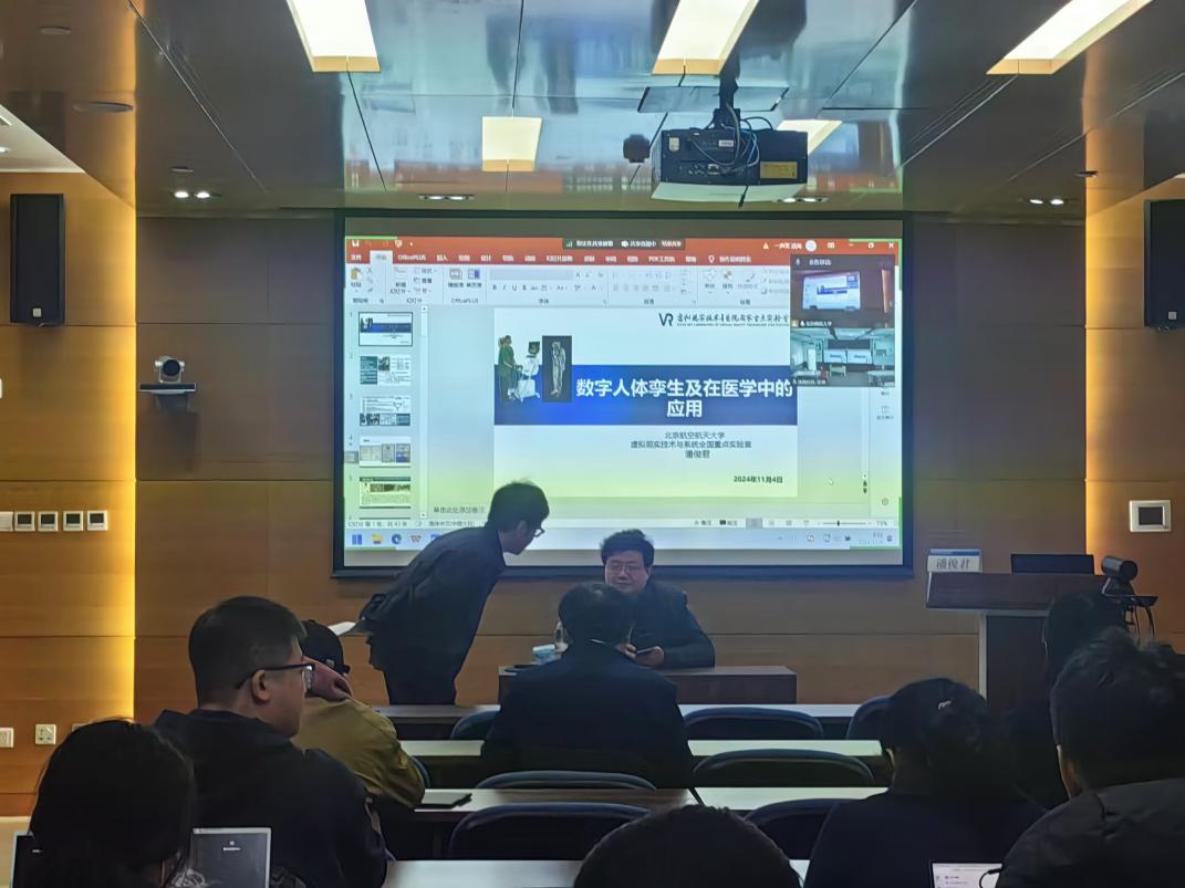 潘俊君老师从数字人体孪生及应用以及VR/AR+医疗的研究进展展开讲座报告,为同学们讲解虚拟现实+未来医疗的相关前景。