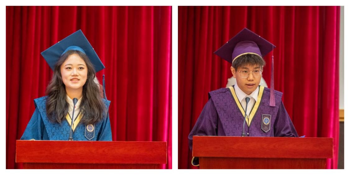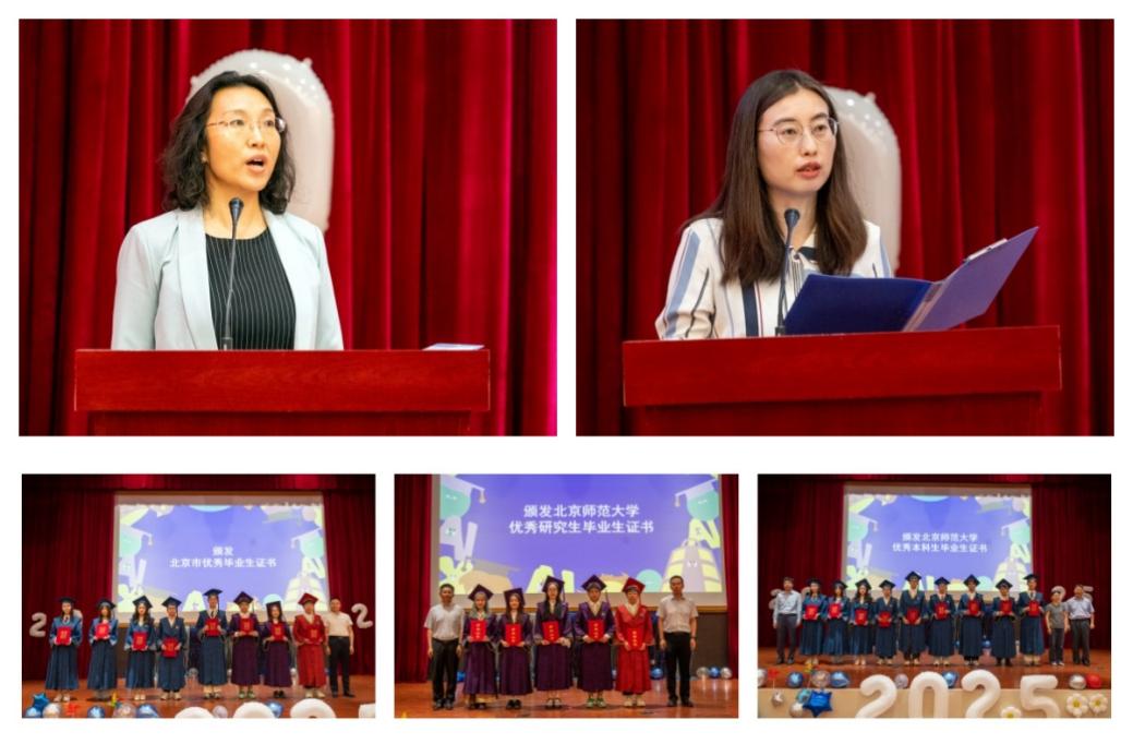 在毕业生代表发言环节,本科生徐洋同学和研究生李奥奇同学分别上台发言。他们回顾了在bet365中国 度过的难忘的求学时光,表达了对母校的眷恋和对未来的憧憬。字里行间流露的感恩与惜别之情,生动诠释了北师大bet365中国 学子的青春朝气和进取精神。