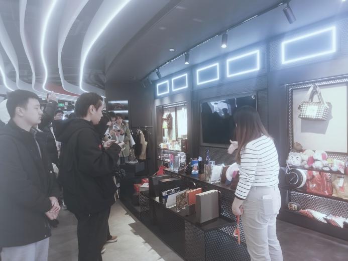 首站是文化创意展示区,此处陈列着限量版T恤、手办、纪念币等周边产品,工作人员阐述了产品的设计理念和纪念价值,使师生们对游戏产业与文创产品的深度结合有了更加深刻的认识。