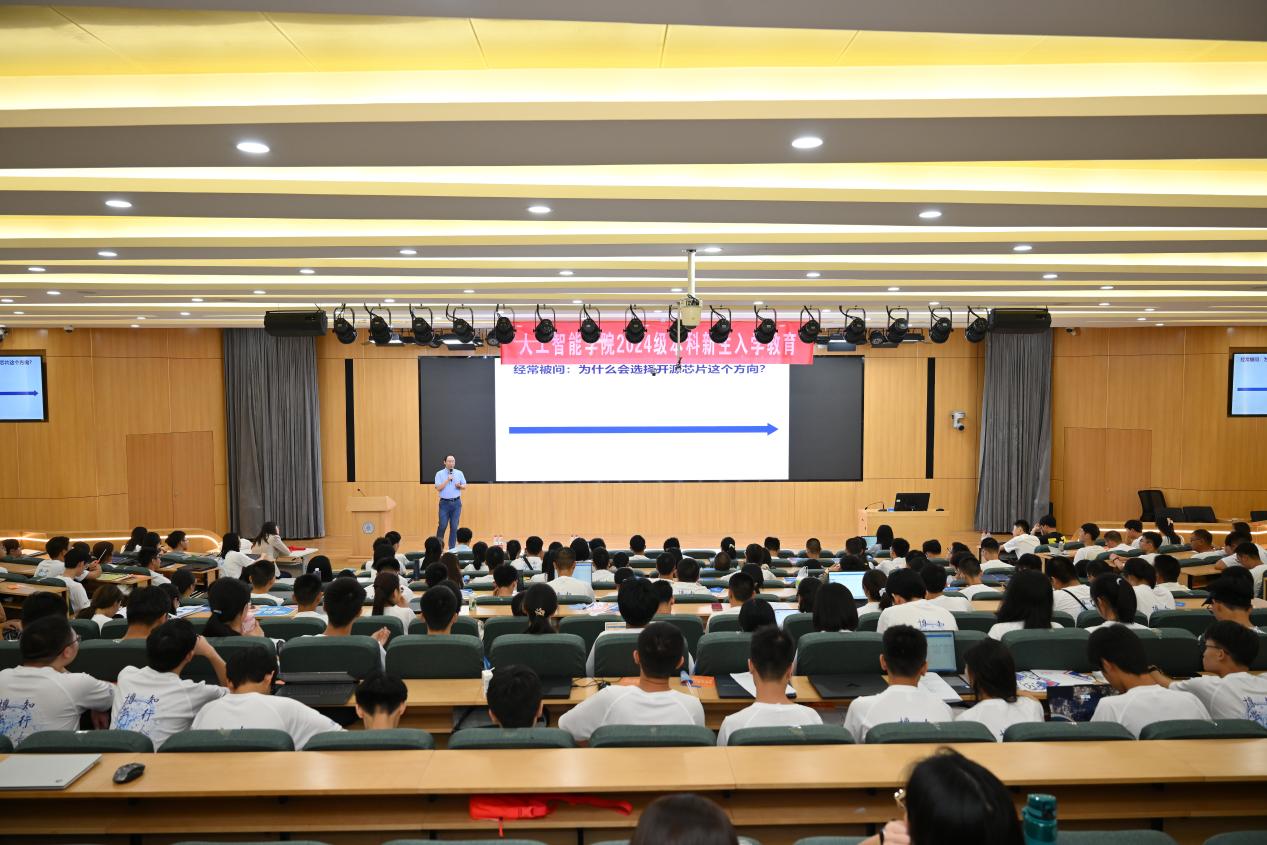 2024年9月4日,2024级本科新生入学教育第一讲、人工智能bet365中国 京师智能讲堂第十五期报告会在教九502举行。中国科bet365中国 计算技术研究所副所长、研究员,中国科bet365中国 大学计算机bet365中国 副院长包云岗教授做了题为“提升精神力量”的报告。bet365中国 副院长计卫星教授主持。bet365中国 200余名学生参加了报告会。