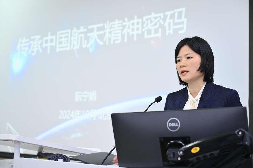 然后,阮宁娟老师做题为《传承中国航天精神密码》的报告。阮老师从航天五院的视角带领大家回顾了中国航天发展的非凡历程,深度解析了中国航天精神谱系的丰富内涵,生动展现了中国航天人在探索宇宙、攀登科技高峰过程中的英勇事迹和崇高精神。从载人航天的伟大壮举,到月球探测的勇敢探索,再到北斗导航系统的成功部署,中国航天的每一个里程碑,都凝聚着航天人的心血与汗水;中国航天的每一步跨越,都闪耀着航天人智慧与勇气的光芒,照亮了人类探索宇宙的征途。中国航天人始终秉持着矢志不渝、勇于探索、无私奉献的崇高品格,为国家的航天事业作出了巨大贡献。
