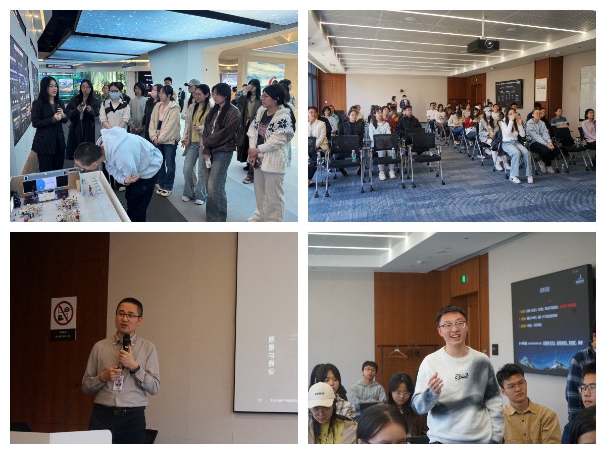 在专题技术讲座环节,华为北研所张春龙经理为大家讲解了企业核心发展战略与科研创新体系,他也勉励在场学子把握好时代机遇,树立远大理想,在属于自己的岗位上发光发热。在互动交流环节,张经理向我们介绍了华为的招聘计划和招聘日程,从部门架构、岗位类别到培养路径进行了全方位说明。此外,师生围绕着实习生招聘、就业岗位、晋升发展渠道、新人培养机制等方面进行提问,张经理回复,华为对于新人入职之后有完善的培养机制,同事也为具备卓越专业能力的优秀人才提供广阔发展平台。