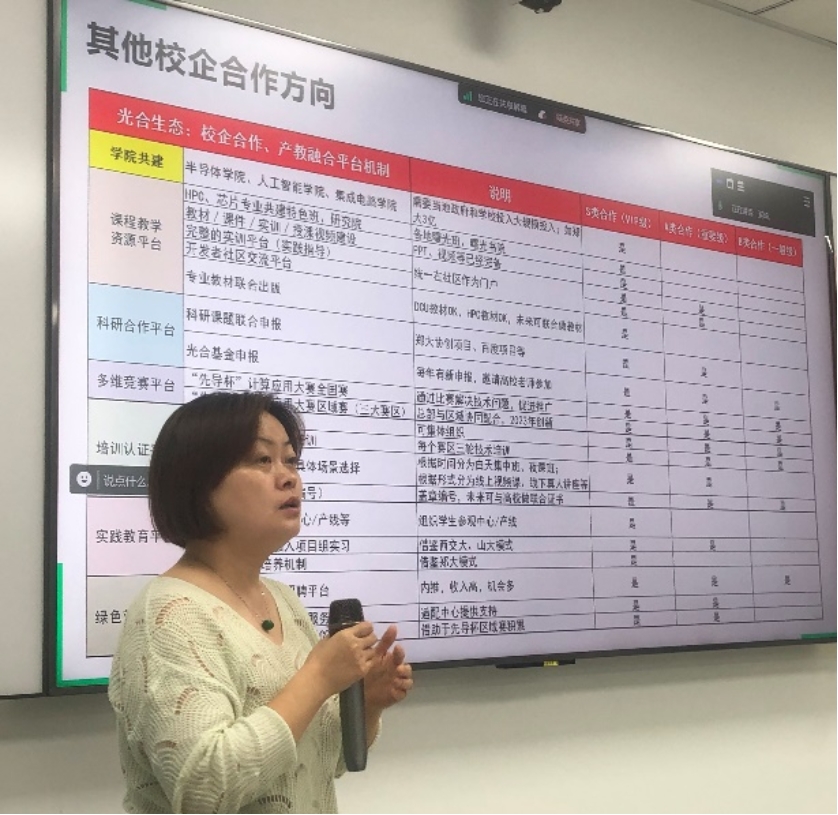 吉青老师及其同事介绍智能计算创新设计赛。吉青老师重点强调了大赛的核心价值:致力于系统性地推动先进计算技术的实践应用,着眼于完善并优化先进计算生态体系,加速科技人才梯队建设,树立产业创新发展标杆。吉老师回顾了上一届“先导杯”决赛内容,并突出介绍了该赛道赛题来自AI产业一线实际问题的特色。来宝老师深入解析了2024年“先导杯”智能计算创新设计赛的赛题,详细介绍了赛题的技术要点和难点,包括协同优化、卷积算子优化等多个方面。这些赛题不仅考验选手们的算法设计和编程能力,更要求选手具备扎实的理论基础和创新的思维方式。 报告也分享了优秀选手的优化方案和思路,让同学们对于先导杯有了更清晰的理解。赵瑞强老师作为中科曙光的资深培训专家,解答了大赛培训相关事宜。