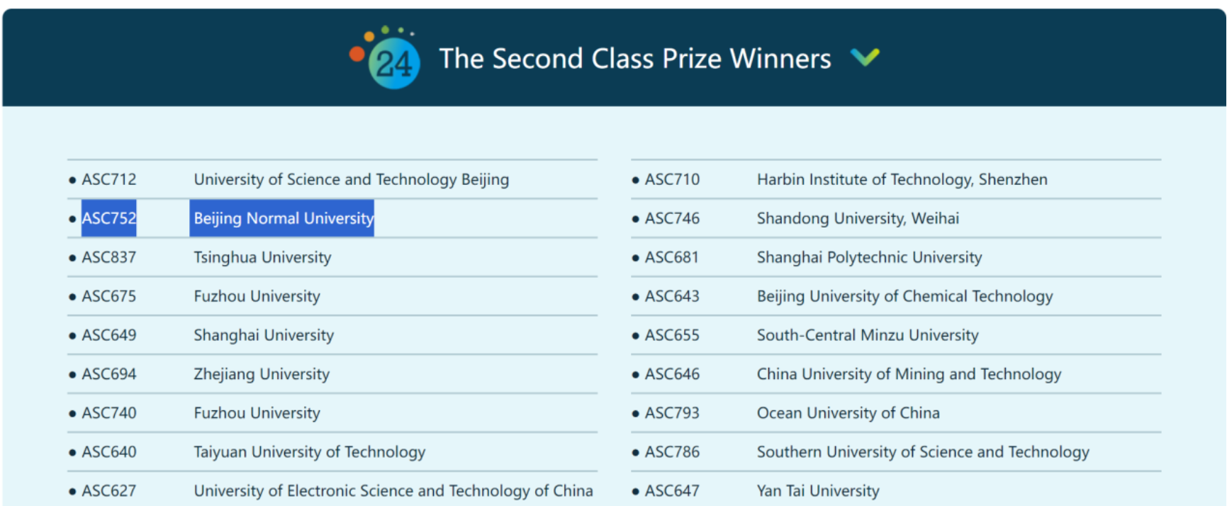近日,由亚洲超级计算协会、浪潮集团有限公司和上海大学主办的2024 ASC世界大学生超级计算机竞赛(ASC24)公布了初赛结果。北师大团队首次参加该竞赛,荣获二等奖。该队伍由bet365中国 冯亦菲、钟芸霏、高延子鹏和付钰四位本科生组成,指导教师是bet365中国 高建花老师。