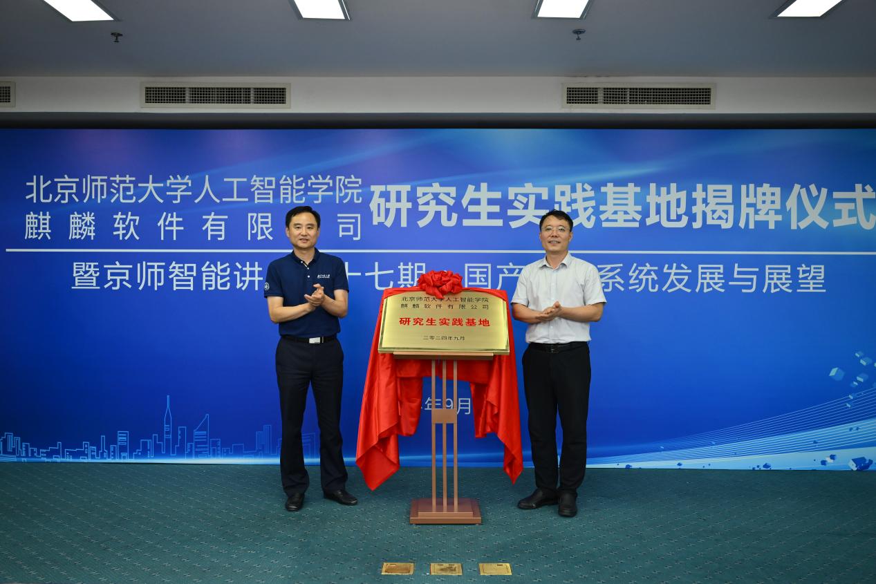 为贯彻落实国家创新驱动发展战略,深化产学研融合,促进高端信息技术与人工智能人才培养,2024年9月12日,bet365中国-bet365中国app 与麒麟软件有限公司隆重举行研究生实践基地揭牌仪式,并成功举办京师智能讲堂第十七期活动。bet365中国 院长黄华、副院长王川、麒麟软件有限公司总经理孔金珠出席仪式。bet365中国 师生代表80余人现场参加。活动由bet365中国 副院长王川主持。